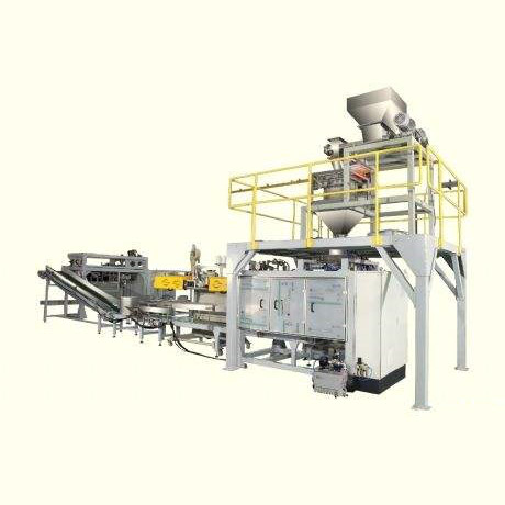 全自動(粉料)給袋包裝系統(tǒng)主要針對化工、食品等行業(yè)而研制的新型包裝機組。該機組具有自動供袋、上袋、稱量、填充、封口等功能。可包裝物料如顏料、面粉等粉狀、超細(xì)粉料。